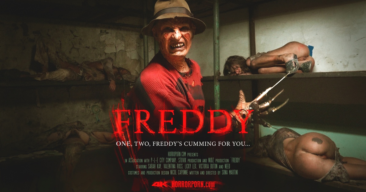 One and two, Freddy is coming for you. A disturbing nightmare became a horrifying reality. Burned demon Freddy took beautiful girls while they were in their bed into his dark cellar. The place reeks of pain and suffering and Freddy rules with a firm hand full of sharp blades. The mad dream king use helpless beauties here and feeds his insatiable hunger for pleasure. Lock the door and grab a crucifix. The nightmare is here and nobody will wake up again.